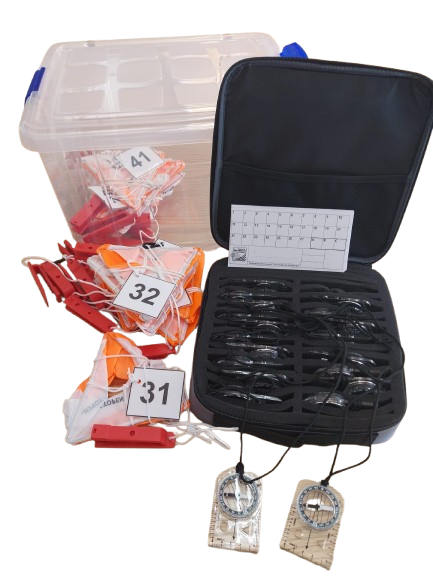 Kit destinat a realitzar activitats o curses d’orientació. Conté: una maleta amb 20 brúixoles, 20 balises (numerades del 31 al 50) amb les seves 20 pinces i d’una situació d’aprenentatge “Aventurers de l’orientació”.