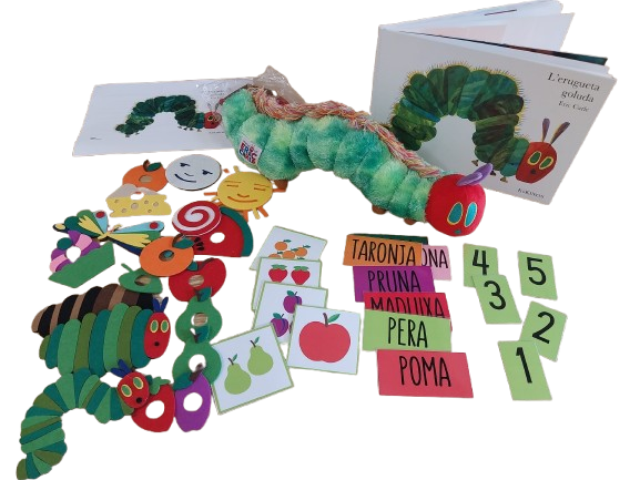 Kit didàctic basat en el conte L’erugueta goluda, amb el llibre, el peluix i felpes dels aliments per treballar la narració de manera manipulativa i vivencial. Kit didàctic basat en el conte L’erugueta goluda, amb el llibre, el peluix i felpes dels aliments per treballar la narració de manera manipulativa i vivencial. Inclou activitats per aprendre els dies de la setmana, el comptatge, l’alimentació saludable i el cicle vital de la papallona. Pensat per a Infantil (3–6 anys), afavoreix el llenguatge oral, la motricitat fina, el joc simbòlic i l’aprenentatge significatiu.